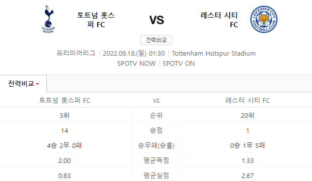 18일 일요일 새벽, 22-23 프리미어리그 8라운드에서 토트넘 대 레스터 경기가 펼쳐진다. 지난 시즌 PL 득점왕 손흥민은 레스터와의 마지막 맞대결에서 멀티골을 터뜨린 기억을 되살려 시즌 첫 골에 도전한다.